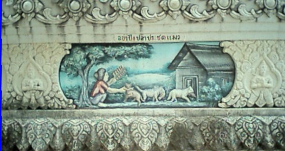 | Keywords: 0008อย่าประชดแมว.JPG อย่าปิ้งปลาประชดแมว -- Illustrated Proverb Don't bake fish to spite cat Phra That Phanom chedi Amphoe That Phanom Nakhon Phanom Province northeastern Thailand 2004-06-21 Pawyi Lee Public domain Reliefs in Thailand Wat Phra Tat Phanom Cats in art Feeding animals in art Thai proverbs |