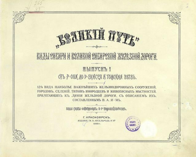 | Keywords: 000b title list.jpg ru Альбом «Великий путь Виды Сиби и и Великой сиби ской железной до оги» 1899 1899 flickr photos by I R Tomaskiewicz comments by V A I-v Custom license marker 2014 04 08 PD-RusEmpire PD-old Great Path - Views of Siberia and Great Siberian Railway Uploaded with UploadWizard |