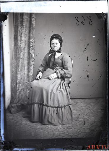 | Keywords: Madam Detlef Buck, Maren Petersdatter blev født den 5. oktober 1828 på gården ”Baltzergaard” i Seest. Hendes forældre var Peter Christiansen og Maren Hansdatter. Hun blev gift med Ditlef Mariussen Buch den 24. januar 1848 i Seest Kirke. De boede i Seest indtil 1871, hvor de solgte gården og i 1876 flyttede de til Søndergade i Kolding. På Aagaards billede står der ”Mad. Detef Buck Skannerup”. Ditlef var født den 8. november 1826 i Skanderup, og det er tænkeligt, at de har boet i Skanderup i perioden 1871 til 1876. Maren Petersdatter døde i Kolding den 7. november 1907. Maren og Ditlef fik sammen 7 børn, hvoraf de 6 blev voksne. |