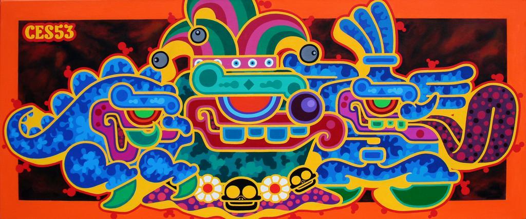 Keywords: 005 COMEBACK OF THE CHAVIN MINDED FUNNY ONE.jpg en COMEBACK OF THE CHAVIN MINDED FUNNY ONE 180 by 75 cm acrylic paint on canvas By contemporary artist Ces53 own Carlaheimstein Acrylic paintings Ces53