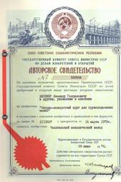 Keywords: Свидетельство 010006.jpg ru Авто ское свидетельство Опо но-пово отный к уг для г узоподъемных машин 1976 2014-09-10 01 51 51 own Dergalev PD-RU-exempt Insignia cc-by-sa-4 0 Invention author s certificate