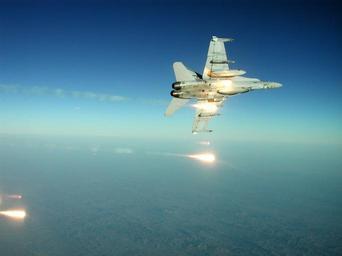 | Keywords: afghanistan enduring freedom enduringfreedom f/a-18 fa18 flares hornet operation enduring freedom operationenduringfreedom people vfa-94 vfa94 southwest asia southwestasia outdoor 011031-N-3405L-014.In the skies over Afghanistan (Oct. 31, 2001) -- An F/A-18 Hornet from the "Mighty Shrikes" of Strike Fighter Squadron Nine Four (VFA-94) fires flares during a training mission. Flares are part of the aircraft's defense against surface-to-air and air-to-air infra-red (IR) heat-seeking missile attacks. IR missiles follow a heat source. The heat created by the flare will hopefully burn hotter than the aircraft engine and attract the incoming missile away from the aircraft. VFA-94 is assigned to Carrier Airwing Eleven (CVW 11) aboard USS Carl Vinson (CVN 70) and conducting missions in support of Operation Enduring Freedom. U.S. Navy photo by Lt. Steve Lightstone. (RELEASED). 011031-N-3405L-014.In the skies over Afghanistan (Oct. 31, 2001) -- An F/A-18 Hornet from the "Mighty Shrikes" of Strike Fighter Squadron Nine Four (VFA-94) fires flares during a training mission. Flares are part of the aircraft's defense against surface-to-air and air-to-air infra-red (IR) heat-seeking missile attacks. IR missiles follow a heat source. The heat created by the flare will hopefully burn hotter than the aircraft engine and attract the incoming missile away from the aircraft. VFA-94 is assigned to Carrier Airwing Eleven (CVW 11) aboard USS Carl Vinson (CVN 70) and conducting missions in support of Operation Enduring Freedom. U.S. Navy photo by Lt. Steve Lightstone. (RELEASED). 011031-N-3405L-014.In the skies over Afghanistan (Oct. 31, 2001) -- An F/A-18 Hornet from the "Mighty Shrikes" of Strike Fighter Squadron Nine Four (VFA-94) fires flares during a training mission. Flares are part of the aircraft's defense against surface-to-air and air-to-air infra-red (IR) heat-seeking missile attacks. IR missiles follow a heat source. The heat created by the flare will hopefully burn hotter than the aircraft engine and attract the incoming missile away from the aircraft. VFA-94 is assigned to Carrier Airwing Eleven (CVW 11) aboard USS Carl Vinson (CVN 70) and conducting missions in support of Operation Enduring Freedom. U.S. Navy photo by Lt. Steve Lightstone. (RELEASED). people afghanistan hornet flares fa18 operationenduringfreedom enduringfreedom vfa94 southwestasia |
