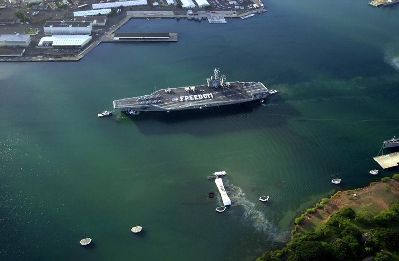 | Keywords: 01 credit as u.s. navy photo b 01creditasusnavyphotob 02 ph2 shawn patrick eklund. (r 02ph2shawnpatrickeklundr pearl harbor pearlharbor hawaii (hi) hawaiihi united states of america (usa) unitedstatesofamericausa outdoor Aerial view of the US Navy (USN) Aircraft Carrier USS NIMITZ (CVN 68) passing by the battleship USS Arizona (BB 39) Memorial as sailors spell out FREEDOM on the flight deck and man the rails prior to pulling in for liberty. This is the first port call for the ship following her transit around South America. The NIMITZ is en route to her new homeport at San Diego, California (CA). Official U.S. Navy Photograph, now in the collections of the National Archives in the Online Public Access. Aerial view of the US Navy (USN) Aircraft Carrier USS NIMITZ (CVN 68) passing by the battleship USS Arizona (BB 39) Memorial as sailors spell out FREEDOM on the flight deck and man the rails prior to pulling in for liberty. This is the first port call for the ship following her transit around South America. The NIMITZ is en route to her new homeport at San Diego, California (CA). Official U.S. Navy Photograph, now in the collections of the National Archives in the Online Public Access. |