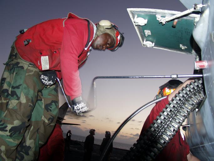 | Keywords: 011218-N-0376S-061 USS Stennis - Ordnance Load.jpg en 011218-N-0376S-061 At sea aboard USS John C Stennis CVN 74 Dec 18 2001- An Aviation Ordnanceman on the flight deck of USS John C Stennis CVN 74 loads ammunition into an F/A-18 Hornet aircraft Stennis and her embarked Carrier Air Wing CVW 9 are deployed in support of Operation Enduring Freedom U S Navy photo by Photographer's Mate 3rd Class Kimara Scott RELEASED 011218-N-0376S-061 Navy http //www navy mil/view_image asp id 250 U S Navy photo by Photographer's Mate 3rd Class Kimara Scott PD-USGov-Military-Navy Aviation Ordnanceman Aboard USS John C Stennis CVN-74 |