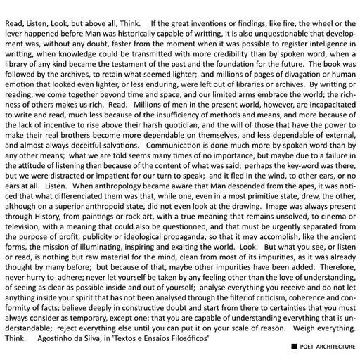 Keywords: 011_2 Agostinho da Silva Text in English. POET ARCHITECTURE POET ARCHITECTURE