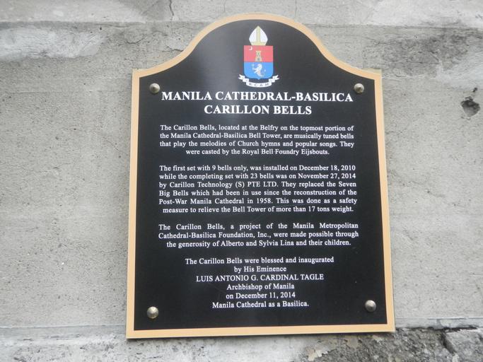 | Keywords: 01891jfManila Cathedral Basilica Intramuros Manila Bells Landmarksfvf 19.jpg Intramuros Landmarks include the Manila Cathedral Rufino J Cardinal Santos Bell Garden Jaime L Cardinal Sin Ground Belfry 7 big bells 17 tons from the Bell Tower Belfry foundered by Friedrich Wilhelm Schilling 1 of the 7 bells is bigger than the Pan-Ay Bell the now 2nd largest in Philippines Archbishop Gabriel M Reyes Audio-Visual Room Carillon Bells Parish Office Rectory Interior of the Manila Metropolitan Cathedral-Minor Basilica of the Immaculate Conception re-opened on April 9 2014 after structural retrofitting architectural restoration and engineering enhancements Plaza de Roma Intramuros King Charles IV of Spain monument Intramuros Ž along Genral Luna Real de Palacio Street corner A Soriano Jr Avenue formerly Aduana corner Arzobizpo Street; Intramuros Fire Station Bureau of Fire Protection Plaza de Roma 1824 bronze statue of Carlos IV of Spain 1886 Fountain; Main facade-Clock Tower-Belfry; Note Judge Florentino Floro the owner to repeat Donor Florentino Floro of all these photos hereby donate gratuitously freely and unconditionally all these photos to and for Wikimedia Commons exclusively for public use of the public domain and again without any condition whatsoever 2016-09-08 13 16 08 own Judgefloro other versions Exterior of the Manila Metropolitan Cathedral-Minor Basilica of the Immaculate Conception |