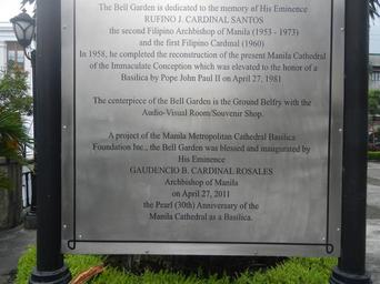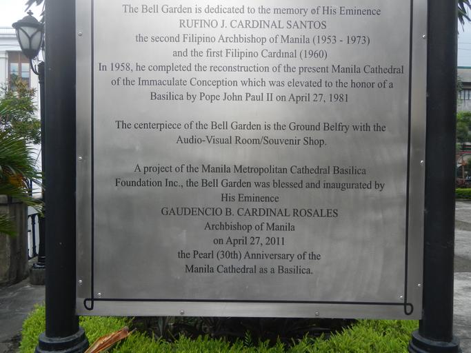 MAKE A MEME View Large Image ...Manila Cathedral Basilica Intramuros Manila Bells Landmarksfvf 18.jpg Intramuros Landmarks include the Manila Cathedral Rufino J Cardinal Santos Bell Garden Jaime L Cardinal Sin Ground Belfry 7 big bells 17 tons from the Bell Tower Belfry ...