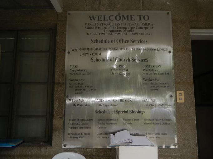 | Keywords: 01931jfManila Cathedral Basilica Intramuros Manila Landmarksfvf 20.jpg Intramuros Landmarks include the Manila Cathedral Rufino J Cardinal Santos Bell Garden Jaime L Cardinal Sin Ground Belfry 7 big bells 17 tons from the Bell Tower Belfry foundered by Friedrich Wilhelm Schilling 1 of the 7 bells is bigger than the Pan-Ay Bell the now 2nd largest in Philippines Archbishop Gabriel M Reyes Audio-Visual Room Carillon Bells Parish Office Rectory Interior of the Manila Metropolitan Cathedral-Minor Basilica of the Immaculate Conception re-opened on April 9 2014 after structural retrofitting architectural restoration and engineering enhancements Plaza de Roma Intramuros King Charles IV of Spain monument Intramuros Ž along Genral Luna Real de Palacio Street corner A Soriano Jr Avenue formerly Aduana corner Arzobizpo Street; Intramuros Fire Station Bureau of Fire Protection Plaza de Roma 1824 bronze statue of Carlos IV of Spain 1886 Fountain; Main facade-Clock Tower-Belfry; Note Judge Florentino Floro the owner to repeat Donor Florentino Floro of all these photos hereby donate gratuitously freely and unconditionally all these photos to and for Wikimedia Commons exclusively for public use of the public domain and again without any condition whatsoever 2016-09-08 13 27 09 own Judgefloro other versions Exterior of the Manila Metropolitan Cathedral-Minor Basilica of the Immaculate Conception |