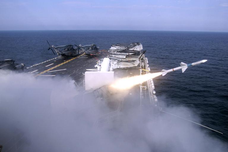 | Keywords: 020117-N-2210L-001 Sea Sparrow Launch.jpg en 020117-N-2210L-001 At sea aboard USS Wasp LHD 1 Jan 17 2002 -- A single RIM-7M Sea Sparrow launches from the ships forward missile mount The RIM-7M is used aboard ships for surface-to-air anti-missile defense Wasp is conducting a Joint Task Force/Special Operations Capabilities SOCEX Exercise while preparing for her scheduled six-month deployment U S Navy Photo by Photographer s Mate Airman Aaron W Lockhart RELEASED 020117-N-2210L-001 Navy http //www navy mil/view_image asp id 645 U S Navy Photo by Photographer s Mate Airman Aaron W Lockhart PD-USGov-Military-Navy Launches of RIM-7 Sea Sparrow missiles Aboard USS Wasp LHD-1 January 2002 photographs |
