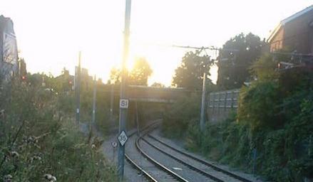 Keywords: 028139 tramlink mitcham.jpg gauntlet track on Tramlink in Mitcham London TQ 272 681 Mitcham railway station London Mitcham tram stop looking towards the bridge carrying London Road over the tram line An example of The upper picture is from The picture on the right is looking north from the bridge There has been a railway of some sort at this point since 1803 although not continuously the Surrey Iron Railway having been at a higher level than the present tramway In 1967 the wall on the right which dates from the construction of the Wimbledon Croydon Railway was in danger of collapse and was shored up initially with timber baulks later with massive concrete buttresses When Tramlink was constructed rather than go to the expense of rebuilding the wall the planners opted to use gauntlet track for this section own since 1803 user RHaworth thumb RHaworth Tramlink in the London Borough of Merton Tramlink tracks Gauntlet tracks Images by Roger W Haworth |