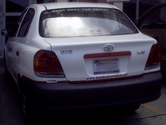 | Keywords: '03-'05 Toyota Yaris Sedan -- Rear.JPG 2003-2005 Toyota Yaris photographed in Saint Marteen Bull-Doser's Lost Photographs Toyota Yaris XP10 sedan White Toyota sedans yaris 2000s white sedans Own 2006-08-30 Bull-Doser wikipedia en All Rights Released |