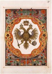 | Keywords: 03 Tsarskiy titulyarnik.jpg  en Page with Double-headed eagle of Russia from Tsarskiy titulyarnik исунок ге ба  осковского из книги По т еты ге бы и печати Большой госуда ственной книги 1672 г Ге альдическая книга в Э митаже Каталог выставки СПб 2005 с 17 http //gerbroda ru/history/grafika php Collective of masters of Tsarskiy titulyarnik 1672 100px 01 Tsarskiy titulyarnik jpg PD-old-100 Tsarskiy titulyarnik Files uploaded by Shakko from various sources Double-headed eagles Coats of arms of the Tsardom of Russia Crowned double-headed eagles |