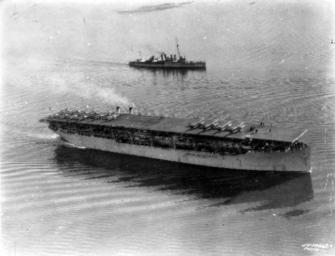 MAKE A MEME View Large Image Langley (CV-1) with its air group aboard consisting of Vought VE-7 SF with a special attachment on landing gear to avoid nose overs. c 1923-24. Four stack destroyer steams alongside as a plane guard. JMF Hasse Collection via San Diego Aero ...