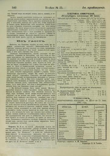Екатеринбургская неделя. 1887. № 25, первое прибавление