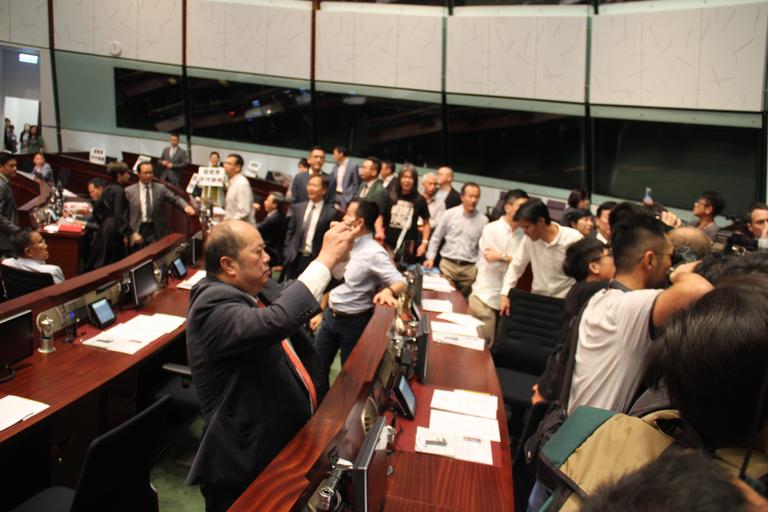 Keywords: 香港本土議員宣誓風波上演政治對決大戲 05.jpg zh-tw 香港立法 10 26日上演驚人政治大戲(美 之音海彥拍 ) 親中建制派上 三製 立法 流 阻止 年新政梁頌恆和遊蕙禎再次宣誓,並政治施壓 迫立法 主席梁君彥改變自己先前裁定,宣布押後兩人宣誓後,10 26日的立法 大 成為外界 注的焦點 同聲譴責梁君彥讓政治凌駕法律的 建制派議員, 三上午組成人鏈,成功護 梁頌恆和遊蕙禎 入議事大廳要求宣誓,但 終梁君彥以無法恢復 議廳秩序為由宣布休 ,再次阻止兩人宣誓 2016-10-26 11 20 53 http //www voachinese com/a/localist-legislators-fail-to-swear-20161026/3566630 html 海彥 other versions Custom license marker 2016 11 06 PD-USGov-VOA Hong Kong LegCo members' oath-taking controversy |