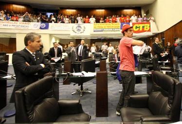 | Keywords: invasão tadeu veneri tadeuveneri indoor Após invasão do Plenário, durante a sessão desta segunda-feira (5/12), manifestantes rasgam as pautas de votações e demais documentos que estavam nas bancadas dos deputados. Foto: Nani Gois/Alep (crédito obrigatório) Após invasão do Plenário, durante a sessão desta segunda-feira (5/12), manifestantes rasgam as pautas de votações e demais documentos que estavam nas bancadas dos deputados. Foto: Nani Gois/Alep (crédito obrigatório) | ||||