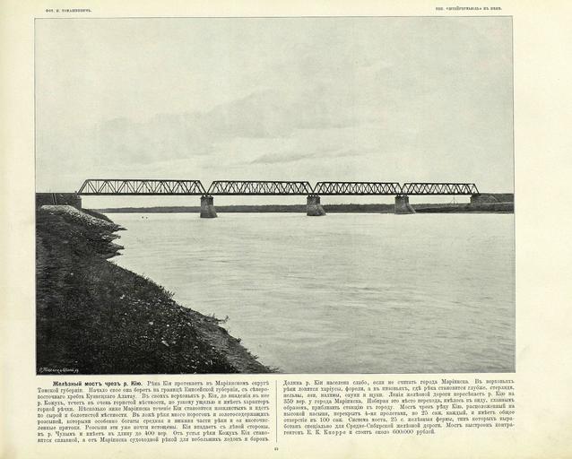 Keywords: 061 Железный мост через р Кию.jpg en «Great Path - Views of Siberia and Great Siberian Railway» book 1899 ru Альбом «Великий путь Виды Сиби и и Великой сиби ской железной до оги» 1899 1899 flickr photos by I R Tomaskiewicz comments by V A I-v Custom license marker 2014 04 08 PD-RusEmpire PD-old Great Path - Views of Siberia and Great Siberian Railway Kiya River Bridges in Kemerovo Oblast Mariinsk 1890s bridges in Russia Railway bridges in Russia Iron truss bridges in Russia Uploaded with UploadWizard |
