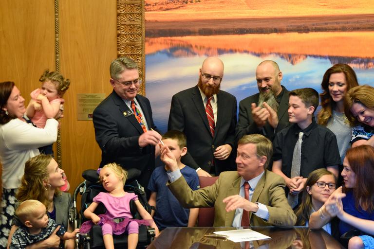| Keywords: Senator Chris Holbert (R - District 30) joins Rep. Singer, Gov. Hickenlooper and their guests for the signing of House Bill 1373 -- Student Medical Marijuana Use at School.  Senator Chris Holbert (R - District 30) joins Rep. Singer, Gov. Hickenlooper and their guests for the signing of House Bill 1373 -- Student Medical Marijuana Use at School.   |