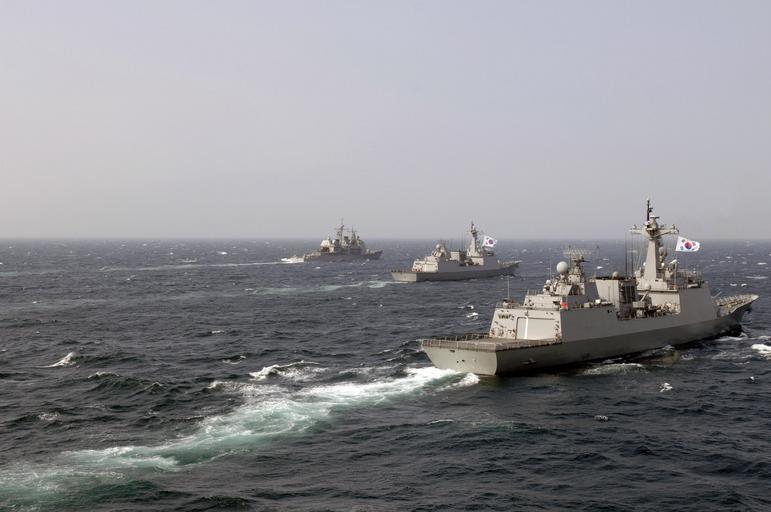 Keywords: 070327-N-7130B-123.jpg 070327-N-7130B-123 SEA OF JAPAN March 27 2007 “ A formation of ships comprised of members of the Ronald Reagan Carrier Strike Group and the Republic of Korea Navy steam in formation in conjunction with Exercise Reception Staging Onward Movement and Integration/Foal Eagle RSOI/FE 2007 The exercise demonstrates the U S commitment to the ROK/U S alliance and enhances combat readiness of ROK and U S supporting forces through combined and joint training U S Navy photo by Mass Communication Specialist 2nd Class Aaron Burden RELEASED https //navcms news navy mil/ 2007-03-27 Mass Communication Specialist 2nd Class Aaron Burden PD-USGov-Military-Navy Chungmugong Yi Sun-sin class destroyer Foal Eagle 2007