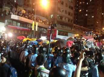 Keywords: 香港各界發起反人大釋法大遊行和集會 07.jpg zh-tw 中 人大常委 11 7日將就香港 年新政兩位議員宣誓風波,對基 法 宣誓 例宣布釋法內容之際,香港民間人權陣線星 天發起各界 反對釋法大遊行 和集 ,抗議人大 香港高等法院審理 宣誓風波司法覆核案 間,主動對基 法第104 釋法,破壞香港獨立的司法制度 香港民陣發起反釋法大遊行後,數以千計的示威 繼續遊行到西環的中聯辦抗議人大釋法 8點半左右,示威 手舉雨傘再次沖擊警方防線,警方則狂噴辣椒噴劑還擊 警方調派大批警員增援,並將配備防暴頭盔的警員派至 線與示威 對峙 警方不斷呼籲示威 持冷 ,不要 擊警方防線,要求示威 盡快離開 9點前, 中聯辦外與警察對峙的示威 突然撤離,輕 西 警署外的徳輔道西和西邊街道口,現場雙向交 中斷, 場自2014年雨傘運動後的佔領行動 醞 中,現場至少 幾千之 十多分鐘後,警方開始廣 播,要求佔路人士離開 示威 9點過後佔據了中聯辦外 段德輔道,並 中聯辦後 外與警方防線展開推撞,警方用辣椒噴 還擊將示威 防線推後 示威 不斷呼喊反對釋法 警方 中聯辦西邊的 光街路口佈署第二道防線,並 警員從路旁的西 警署裡向警察傳遞防暴盾牌 步部署防線 目前還不清楚警方何時清場 2016-11-06 21 15 34 http //www voachinese com/a/hk-protest-20161106/3583208 html 海彥 other versions Custom license marker 2016 11 06 PD-USGov-VOA Occupy Sai Wan |
