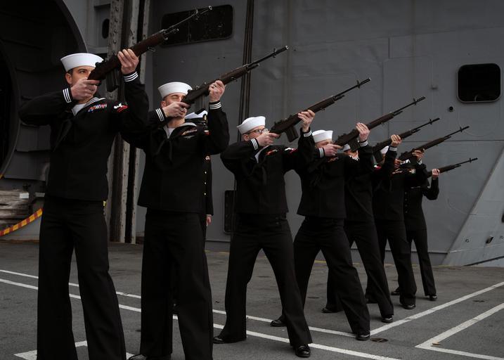 | Keywords: 090410-N-0774H-210 - USS Abraham Lincoln Rifle Salute.jpg 090410-N-0774H-210 PACIFIC OCEAN April 10 2009 Sailors from the weapons department of the aircraft carrier USS Abraham Lincoln CVN 72 perform a rifle salute during a burial at sea ceremony Lincoln is on a scheduled underway U S Navy photo by Mass Communication Specialist Seaman Apprentice Aaron Hubner/Released 090410-N-0774H-210 Navy http //www navy mil/management/photodb/photos/090410-N-0774H-210 jpg 2009-04-10 Mass Communication Specialist Seaman Apprentice Aaron Hubner PD-USGov-Military-Navy Photographs taken on 2009-04-10 Aboard USS Abraham Lincoln CVN-72 M14 rifle at sea burials Males with rifles Men facing right Military people in 2009 People of the United States in 2009 Sailor suits Personality rights |