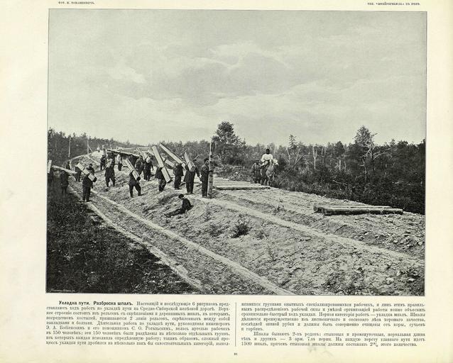 | Keywords: 092 Укладка пути Разброска шпал.jpg en «Great Path - Views of Siberia and Great Siberian Railway» book 1899 ru Альбом «Великий путь Виды Сиби и и Великой сиби ской железной до оги» 1899 1899 flickr photos by I R Tomaskiewicz comments by V A I-v Custom license marker 2014 04 08 PD-RusEmpire PD-old Great Path - Views of Siberia and Great Siberian Railway Rail construction in Russia Uploaded with UploadWizard | ||||