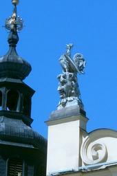 Keywords: 09Kraków.JPG Kraków Poland Own 2007-07 Rj1979 Sukiennice Mascarons Mascarons in Poland Renaissance sculptures in Poland Detail view of Town Hall Tower in Kraków