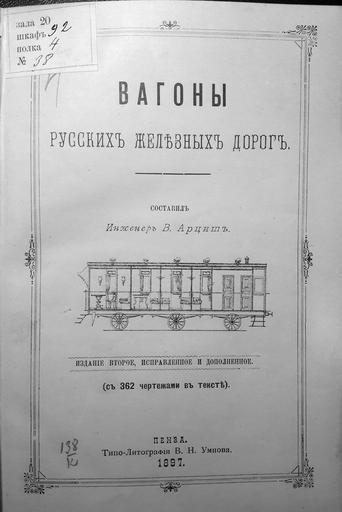 Keywords: россия russia железная дорога железнаядорога railway old time oldtime вагон blackandwhite monochrome text writing black and white Арциш В.А. Вагоны русских железных дорог /Сост. инж. В. Арциш. - 2-е изд., испр. и доп.. - Пенза : типо-лит. В.Н. Умнова, 1897. - 254, II с., 362 черт. ; 22 см Арциш В.А. Вагоны русских железных дорог /Сост. инж. В. Арциш. - 2-е изд., испр. и доп.. - Пенза : типо-лит. В.Н. Умнова, 1897. - 254, II с., 362 черт. ; 22 см