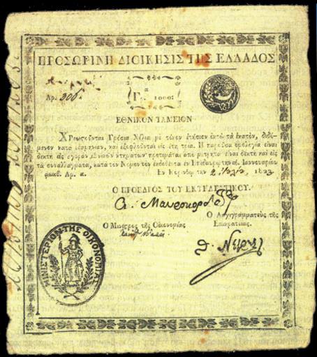 | Keywords: 1000 grossia, Greek rebels goverment currency, 1822-1825.jpg el Ομόλογο ου χρησιμο οιήθηκε ως χαρτονόμισμα α ό την Προσωρινή Διοίκησης τῆς Ἐλλάδος κατά τη διάρκεια της ε ανάστασης του 1821 κατά της Οθωμανικής αυτοκρατορίας en Bond used as banknote by the Provisional Administration of Greece during the revolution of 1821 against the Ottoman Empire 1822 1825 http //www greekbanknotes com/greek-banknotes/national-finance-bank/ author other versions Custom license marker 2016 05 27 PD-old PD-1923 Provisional goverment of Greece 1822-1827 Banknotes with a face value of 1000 |