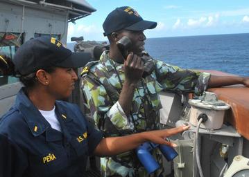 Keywords: 100226-N-8463W-007 (4403904695).jpg U S Navy Ensign Emily Pena an engineering officer aboard the guided-missile frigate USS Nicholas FFG 47 instructs an Africa Partnership Station East student on how to communicate ship coordinates with the bridge during a man overboard drill in the Indian Ocean Feb 26 2010 Nicholas is deployed with high-speed vessel Swift HSV 2 as part of Africa Partnership Station East an international initiative developed by Naval Forces Europe and Naval Forces Africa to improve maritime safety and security on the African continent DoD photo by Mass Communication Specialist 3rd Class Tracey L Whitley U S Navy/Released https //www flickr com/photos/39955793 N07/4403904695/ 100226-N-8463W-007 2010-02-25 23 39 https //www flickr com/people/39955793 N07 U S Department of Defense Current Photos PD-USGov-Military-Navy U S Department of Defense Current Photos https //flickr com/photos/39955793 N07/4403904695 2016-11-27 19 17 05 United States Government Work India Files of India with bad file names Africa Partnership Station USS Nicholas FFG-47 United States Navy Files from Flickr with bad file names Files uploaded by Reguyla |