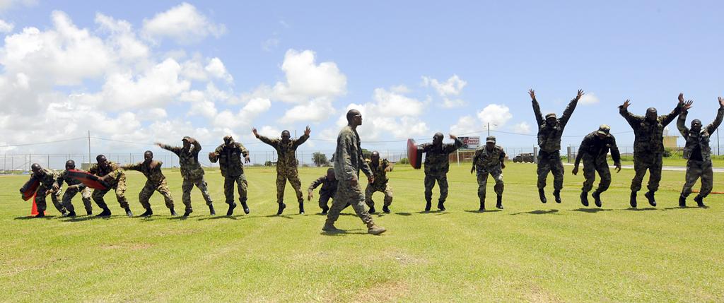 Keywords: 100820-N-9643W-555 (4920283891).jpg U S Marine Corps Sgt Georman Elder center watches as members of the Royal Barbados Defense Force participate in a team-building drill during a Marine Corps Martial Arts subject matter expert exchange as part of Southern Partnership Station SPS 2010 in Bridgetown Barbados Aug 20 2010 SPS is a deployment of specialty platforms to the U S Southern Command area of responsibility in the Caribbean and Central America DoD photo by Mass Communication Specialist 1st Class Kim Williams U S Navy/Released https //www flickr com/photos/39955793 N07/4920283891/ 100820-N-9643W-555 2010-08-20 11 35 https //www flickr com/people/39955793 N07 U S Department of Defense Current Photos PD-USGov-Military-Navy U S Department of Defense Current Photos https //flickr com/photos/39955793 N07/4920283891 2016-11-27 19 15 14 United States Government Work Files from the U S Department of Defense Flickr stream Barbados Outreach Southern Partnership Station United States Navy Files from Flickr with bad file names Files uploaded by Reguyla |
