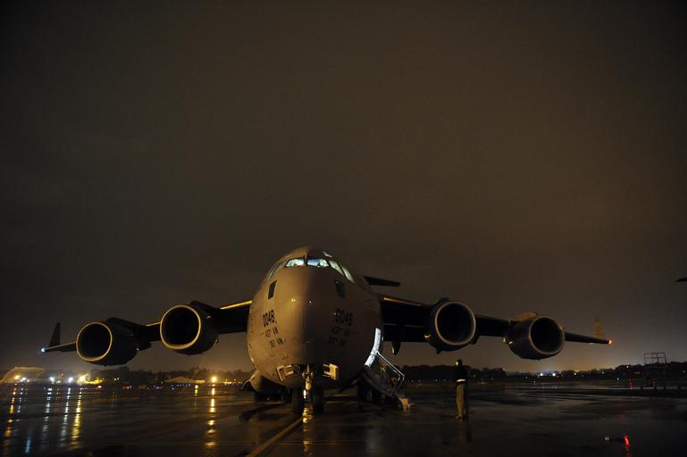 | Keywords: 101211-F-0856M-253 (5261019083).jpg U S Air Force Senior Airman Raheem Crockett a loadmaster with the 17th Airlift Squadron inspects the engines of a C-17A Globemaster III as the aircrew conducts pre-flight checks before a mission in support of Operation Toy Drop at Joint Base Charleston S C Dec 11 2010 Operation Toy Drop is an annual combined service philanthropic project where in exchange for a donated toy thousands of paratroopers receive a lottery ticket for the chance to jump with international jumpmasters and earn foreign jump wings DoD photo by Tech Sgt Manuel J Martinez U S Air Force/Released https //www flickr com/photos/39955793 N07/5261019083/ 101211-F-0856M-253 2010-12-11 03 21 https //www flickr com/people/39955793 N07 U S Department of Defense Current Photos PD-USGov U S Department of Defense Current Photos https //flickr com/photos/39955793 N07/5261019083 2016-09-03 15 51 49 United States Government Work Operation Toy Drop C-17 Globemaster III at Joint Base Charleston Front views of Boeing C-17 Globemaster III Aircraft at night 17th Airlift Squadron United States Air Force |