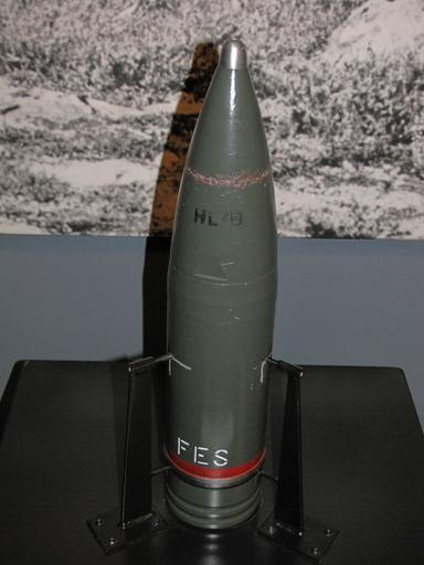 | Keywords: 105 mm hollow charge shell.JPG 105 mm hollow charge shell old style ie no boat tail iron driving band fuze hole 18/24-38 model B hollow charge weight 12 35 kg fi 105 mm haupitseissa 105 H 33 ja 105 H 37 panssarintorjuntaan käytetty ontelokranaatti Hämeenlinnan tykistömuseossa Kuvaus 105 mm ontelokranaatti vanhanmallinen suora kanta rautainen johtorengas sytytintila 18/24-38 ontelolataus mallia B paino 12 35 kg own MKFI 2010-09-05 61 0 19 92 N 24 27 22 69 E region FI World War II anti-tank ammunition 10 5 cm leFH 18 105 H 37 Finnish Artillery Museum Taken with Canon PowerShot SX10 IS Files by User MKFI HEAT munition |