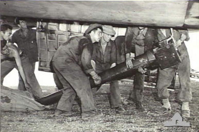| Keywords: 105mm howitzer unloaded near Buna-Gona front.jpg 105mm M3A1 howitzer used in the Battle for Buna-Gona is unloaded through the bomb bay doors of the Boeing B17 Flying Fortress used to transport it New Guinea from Australia The aircraft also brought spare parts a tractor and ammunition and the gun crew November 1942 013744 Clifford Bottomley PD-Australia Uploaded with UploadWizard New Guinea campaign Australia in World War II World War II in 1942 | ||||