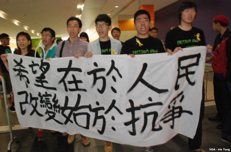 Keywords: 狙擊李飛 (10).jpg zh-tw 民陣及學聯成員拉起橫額, 飛出席政改簡介 的亞洲博覽館內示威 2014-09-02 08 50 03 http //www voacantonese com/media/photogallery/hong-kong-pan-democrats-protest-over-visiting-beijing-officials/2434695 html Voice of America Custom license marker 2014 09 02 PD-USGov-VOA Uploaded with UploadWizard 2014 Hong Kong electoral reform |