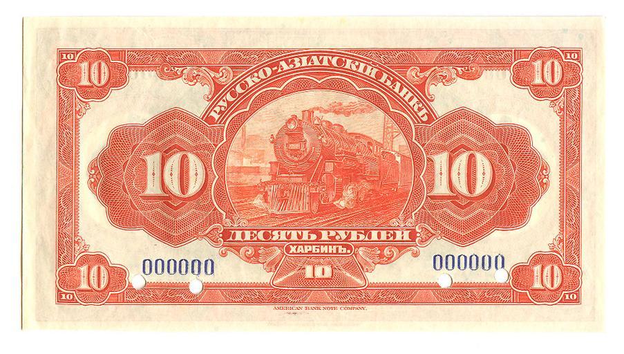 Keywords: 10 рублей Русско-Азиатский банк ABNC av.jpg en 10 убль Русско-Азиатский банк ABNC av jpg own Dvergar Banknotes of Russian-Asian Bank Banknotes with a face value of 10 Steam locomotives on banknotes
