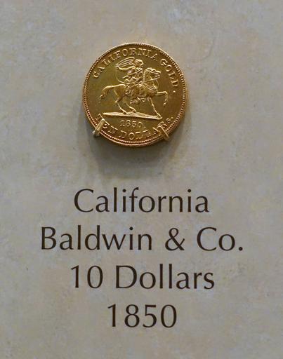 Keywords: 10 Dollars, Baldwin & Co., California, 1850 - National Museum of American History - DSC00224.jpg en Exhibit in the National Museum of American History Washington DC USA Photography was permitted in the museum without restriction 2015-03-27 11 32 27 own Daderot other versions cc-zero Coins of the California Gold Rush in the National Museum of American History |