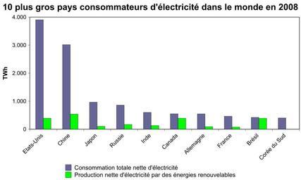 Keywords: 10 pays monde consommateurs électricité.svg fr 10 plus gros pays consommateurs d'électricité dans le monde en 2008 Production nette d'électricité par des énergies renouvelables par rapport à la consommation totale nette d'électricité http //www eia gov/countries/data cfm EIA Lery007 2011-03-24 Cc-zero Renewable energy statistics |