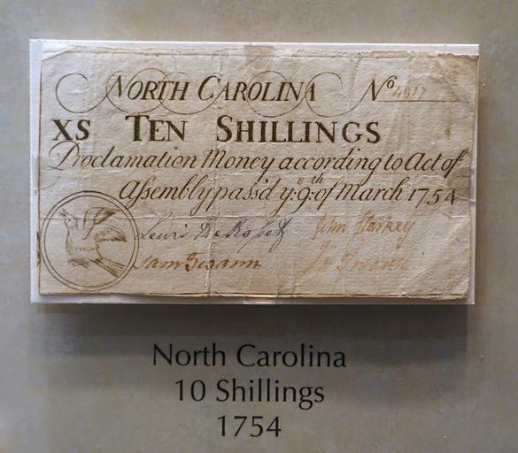 Keywords: 10 Shillings, North Carolina, 1754 - National Museum of American History - DSC00185.jpg en Exhibit in the National Museum of American History Washington DC USA Photography was permitted in the museum without restriction 2015-03-27 11 27 56 own Daderot other versions cc-zero Banknotes in the National Museum of American History Banknotes with a face value of 10 Banknotes of Colonial America Shilling |
