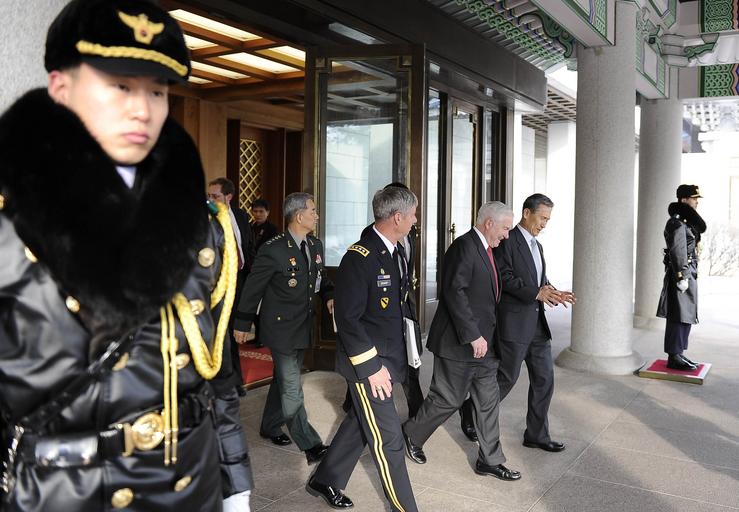 | Keywords: 110114-F-6655M-024 (5355005338).jpg U S Secretary of Defense Robert M Gates walks with South Korean National Defense Minister Kim Kwan-jin and U S Forces Korea commander Army Gen Walter Sharp after a meeting with South Korean President Lee Myung-bak at the Blue House in Seoul South Korea Jan 14 2011 Gates was meeting with President Lee Myung-bak and Defense MInister Kim Kwan-jin to discuss U S and Korean defense issues DoD photo by Master Sgt Jerry Morrison U S Air Force/Released https //www flickr com/photos/39955793 N07/5355005338/ 110114-F-6655M-024 2011-01-14 01 30 https //www flickr com/people/39955793 N07 U S Department of Defense Current Photos PD-USGov U S Department of Defense Current Photos https //flickr com/photos/39955793 N07/5355005338 2016-09-03 15 31 31 United States Government Work Robert Gates in 2011 Kim Kwan-jin Walter L Sharp Cheongwadae |