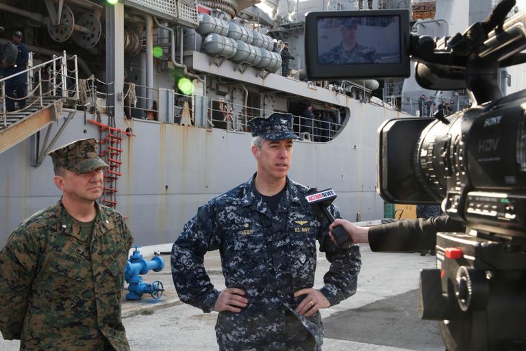 Keywords: 110116-A-0566T-025 (5367447751).jpg 110116-A-0566T-025 MAYPORT Fla January 16 2011 U S Navy Capt John Meier commanding officer of USS Gunston Hall LSD 44 and U S Marine Corps Lt Col Paul Baker Security Cooperation Task Force commander speaks with local media about Amphibious Southern Partnership Station 2011 A-SPS 11 The mission of A-SPS 11 is to conduct subject matter expert exchanges SMEE's with partner nation military and security forces that develop and test participating regional civil and maritime services' capabilities to respond to a wide variety of maritime missions U S Army photo by Sergeant Nashaunda Tilghman https //www flickr com/photos/39955793 N07/5367447751/ 110116-A-0566T-025 2011-01-16 10 02 https //www flickr com/people/39955793 N07 U S Department of Defense Current Photos PD-USGov U S Department of Defense Current Photos https //flickr com/photos/39955793 N07/5367447751 2016-09-03 15 33 08 United States Government Work Southern Partnership Station 2011 Naval Station Mayport