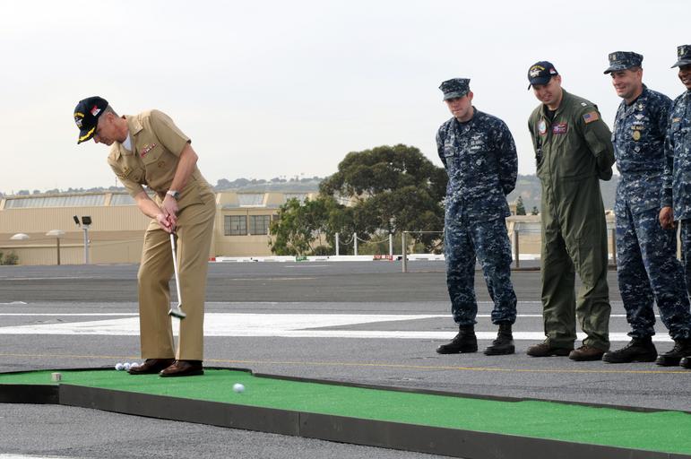 | Keywords: 110125-N-4590G-059 (5393533976).jpg U S Navy Capt Thom Burke left the commanding officer of the aircraft carrier USS Ronald Reagan CVN 76 attempts a putt on a 60-foot green on the flight deck Jan 25 2011 in the Pacific Ocean The putting challenge was part of Play for L A an 18-day promotional event culminating in the Northern Trust Open golf tournament Feb 15 Ronald Reagan was moored in its home port of San Diego preparing for a deployment DoD photo by Mass Communication Specialist Seaman Nicholas A Groesch U S Navy/Released https //www flickr com/photos/39955793 N07/5393533976/ 110125-N-4590G-059 2011-01-25 22 49 https //www flickr com/people/39955793 N07 U S Department of Defense Current Photos PD-USGov U S Department of Defense Current Photos https //flickr com/photos/39955793 N07/5393533976 2016-09-03 15 32 24 United States Government Work Sports in the United States Navy Flight deck of USS Ronald Reagan CVN-76 |