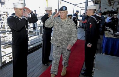 Keywords: 110324-N-AQ172-127 (5558597799).jpg U S Army Gen Carter F Ham center the commanding general of U S Africa Command is piped aboard the amphibious command ship USS Mount Whitney LCC/JCC 20 during a visit to Augusta Bay Italy March 24 2011 in support of Joint Task Force JTF Odyssey Dawn JTF Odyssey Dawn is the U S Africa Command task force established to provide operational and tactical command and control of U S military forces supporting the international response to the unrest in Libya and enforcement of United Nations Security Council Resolution 1973 DoD photo by Mass Communication Specialist 2nd Class Daniel Viramontes U S Navy/Released https //www flickr com/photos/39955793 N07/5558597799/ 110324-N-AQ172-127 2011-03-24 12 43 https //www flickr com/people/39955793 N07 U S Department of Defense Current Photos PD-USGov U S Department of Defense Current Photos https //flickr com/photos/39955793 N07/5558597799 2016-09-03 14 52 08 United States Government Work Joint Task Force Odyssey Dawn Libya Resolution United States Department of Defense |