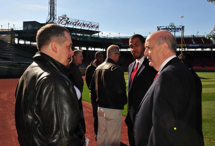 Keywords: navy band navyband national anthem nationalanthem god bless america godblessamerica star spangled banner starspangledbanner outdoor 110408-N-0773H-013 BOSTON, MA (April 8, 2011) Senior Chief Musician Jim Armstrong, left, discusses the march on of the Ceremonial Band with an official from the Boston Red Sox, right, at Boston's Fenway Park in preparation for Opening Day for the Boston Red Sox. The band will perform the "Star Spangled Banner" for the Red Sox home opener. (U.S. Navy Photo by MUC Stephen Hassay/Released) 110408-N-0773H-013 BOSTON, MA (April 8, 2011) Senior Chief Musician Jim Armstrong, left, discusses the march on of the Ceremonial Band with an official from the Boston Red Sox, right, at Boston's Fenway Park in preparation for Opening Day for the Boston Red Sox. The band will perform the "Star Spangled Banner" for the Red Sox home opener. (U.S. Navy Photo by MUC Stephen Hassay/Released) |