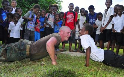 | Keywords: 110420-N-KB563-195 (5657755553).jpg Constructionman Gregory Kaminski a builder assigned to Naval Mobile Construction Battalion 133 competes in a push-up competition with a first grade student from Ban Ban primary school at an engineering civil action project site during Pacific Partnership 2011 U S Navy Seabees and Vanuatu Military Force engineers are working together to build three schoolhouses on the island of Espiritu Santo from the ground up Pacific Partnership is a humanitarian assistance initiative which promotes cooperation throughout the Pacific which will visit five island nations this summer Tonga Vanuatu Papua New Guinea Timor-Leste and the Federated States of Micronesia https //www flickr com/photos/39955793 N07/5657755553/ 110420-N-KB563-195 2011-04-20 00 00 https //www flickr com/people/39955793 N07 U S Department of Defense Current Photos U S Navy photo by Mass Communication Specialist 2nd Class Michael Russell/Released <gallery>File US Navy 110420-N-KB563-195 Builder Constructionman Gregory Kaminski assigned to Naval Mobile Construction Battalion NMCB 133 competes in a push jpg</gallery> PD-USGov U S Department of Defense Current Photos https //flickr com/photos/39955793 N07/5657755553 2016-09-03 14 31 40 United States Government Work United States Navy images from Espiritu Santo Files from the U S Department of Defense Flickr stream |