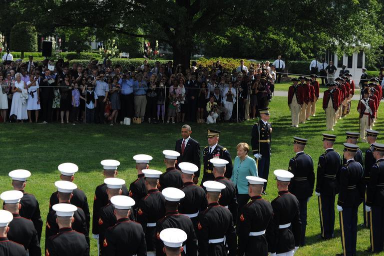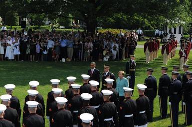 Keywords: white house whitehouse president chancellor obama merkel germany ceremonial navy band navyband navy ceremonial band navyceremonialband people crowd sport outdoor 110607-N-HG258-125 WASHINGTON, D.C. (June 7, 2011) Capt. Brian Walden conducts the U.S. Navy Ceremonial Band as President Barack Obama and Chancellor Angela Merkel inspect the troops during the arrival ceremony welcoming the chancellor of the Federal Republic of Germany, Angela Merkel. Military arrival ceremonies for visiting dignitaries have been held on the south lawn of the White House since the Kennedy administration. (U.S. Navy Photo by MUC Stephen Hassay/Released) 110607-N-HG258-125 WASHINGTON, D.C. (June 7, 2011) Capt. Brian Walden conducts the U.S. Navy Ceremonial Band as President Barack Obama and Chancellor Angela Merkel inspect the troops during the arrival ceremony welcoming the chancellor of the Federal Republic of Germany, Angela Merkel. Military arrival ceremonies for visiting dignitaries have been held on the south lawn of the White House since the Kennedy administration. (U.S. Navy Photo by MUC Stephen Hassay/Released)