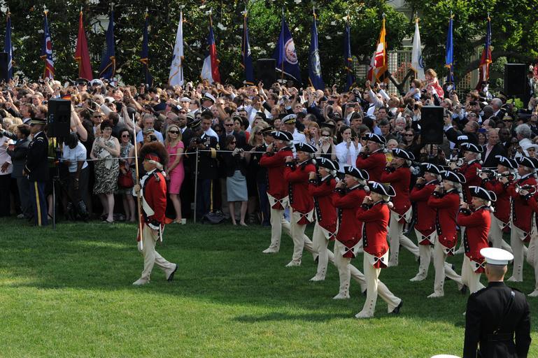 | Keywords: white house whitehouse president chancellor obama merkel germany ceremonial navy band navyband navy ceremonial band navyceremonialband outdoor sport team sport 110607-N-HG258-133 WASHINGTON, D.C. (June 7, 2011) The U.S. Army Old Guard Fife and Drum Corps pass in review during the arrival ceremony welcoming the chancellor of the Federal Republic of Germany, Angela Merkel. Military arrival ceremonies for visiting dignitaries have been held on the south lawn of the White House since the Kennedy administration. (U.S. Navy Photo by MUC Stephen Hassay/Released) 110607-N-HG258-133 WASHINGTON, D.C. (June 7, 2011) The U.S. Army Old Guard Fife and Drum Corps pass in review during the arrival ceremony welcoming the chancellor of the Federal Republic of Germany, Angela Merkel. Military arrival ceremonies for visiting dignitaries have been held on the south lawn of the White House since the Kennedy administration. (U.S. Navy Photo by MUC Stephen Hassay/Released) |
