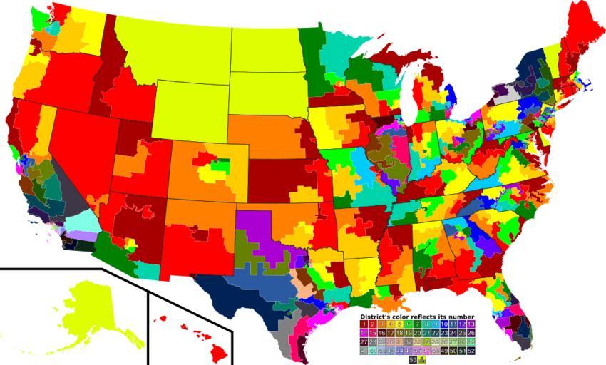 | Keywords: 110th US Congress House districts color.svg  A map of all of the U S congressional districts as of the 110th Congress To find the district's number look at the district compare with the color code at the bottom to get number Based off of http //upload wikimedia org/wikipedia/commons/archive/2/22/20061111221306 21US_House_Winning_Margins png for most boundaries http //georgiareapportionment uga edu/maps/Cong05-sm pdf for Georgia and http //www tlc state tx us/redist/pdf/PLAN1438C_Maps pdf for Texas 2008-02-06 User Mr Matté/Author template 113th US Congress House districts color svg Image US Congressional districts metro areas svg Same as this but includes large views for urban areas Legend of map colors a80000 1st District ff0000 2nd District ff8000 3rd District ffcc00 4th District ffff00 5th District 00ff00 6th District - 008000 7th District 00d4aa 8th District 00ccff 9th District 0000ff 10th District 2c5aa0 11th District 6600ff 12th District - aa00d4 13th District ff00ff 14th District ff0066 15th District 550000 16th District 803300 17th District 806600 18th District - 668000 19th District 225500 20th District 008066 21st District 004455 22nd District 002255 23rd District 2d1650 24th District - 3e3748 25th District 440055 26th District 550022 27th District 808080 28th District cccccc 29th District ffaaaa 30th District - ffb380 31st District 917c6f 32nd District ffe680 33rd District aad400 34th District eeffaa 35th District cdde87 36th District - b3ff80 37th District 8dd35f 38th District 55ff99 39th District 93ac9d 40th District 80ffe6 41st District aaccff 42nd District - 87aade 43rd District 8080ff 44th District b380ff 45th District e580ff 46th District ff80e5 47th District e9afc6 48th District - 2b1100 49th District 2b2200 50th District 0b2817 51st District 00002b 52nd District 333333 53rd District dfff00 At-large District Congressional district maps of the 110th Congress Maps created by User Mr Matté |
