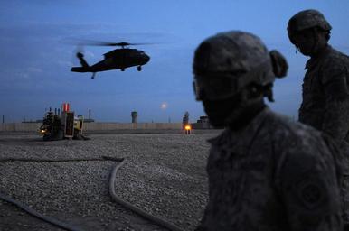 Keywords: 111031-A-FO214-285 (6309865042).jpg U S Army Pfc Daniel Adjei left and Sgt Jose Ramos both assigned to 407th Brigade Support Battalion 2nd Brigade 82nd Airborne Division look on as an UH-60 Black Hawk helicopter lands at the landing zone on Camp Ramadi Iraq Oct 31 2011 Personnel at the Ramadi landing zone test the fuel daily to ensure it is up to standard and keep track of the amount issued to each aircraft DoD photo by Sgt Kissta Feldner U S Army/Released https //www flickr com/photos/39955793 N07/6309865042/ 111031-A-FO214-285 2011-10-31 10 39 https //www flickr com/people/39955793 N07 U S Department of Defense Current Photos PD-USGov U S Department of Defense Current Photos https //flickr com/photos/39955793 N07/6309865042 2016-09-03 13 10 49 United States Government Work 82nd Airborne Division Camp Ramadi Military in North Carolina Puerto Rico Al Anbar Governorate Helicopters United States Department of Defense |