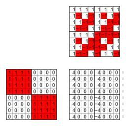 Keywords: 1111 0000 Walsh spectrum.svg Walsh spectra of 3-ary Boolean functions like 1111 0000 The binary strings are multiplied with a Walsh matrix of order 8 The red squares in the background are additional information and show the product of the binary strings with a binary Walsh matrix own Lipedia Walsh spectrum of 3-ary Boolean functions